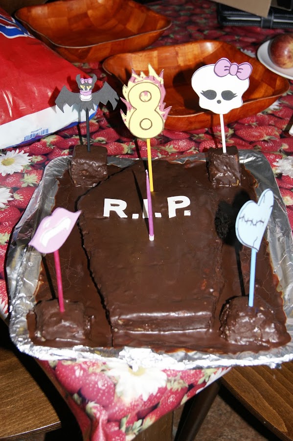 ?Y para las niñas que mejor que una tarta de sus muñecas favoritas.... las Monster High, la receta es exactamente igual que la tarta de los cerdidos, lo unico que hemos cambiado para hacerla mas monstruosa es, en el preparado de natillas, le hemos echado colorante, luego lo hemos cubierto con cobertura y decorado con algunas manualidades de goma eva, el resultado... riquisima y monstruosa...
