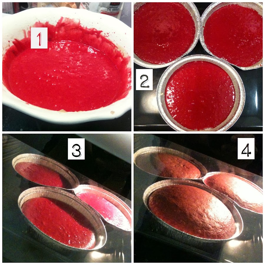 2 y 3.- Masa repartida en los tres moldes.
