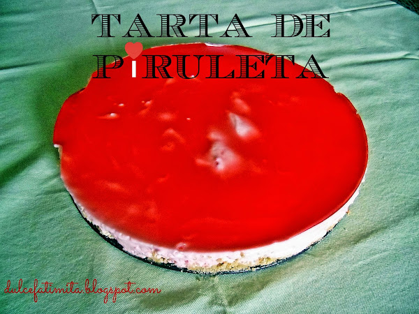 Para la gelatina, calentamos el agua y derretimos las piruletas. Le añadimos el licor de piruleta, y cuando de un primer hervor, retiramos y añadimos la gelatina, removemos hasta integrarlo todos. Dejamos enfriar, y echamos sobre la tarta, previamente cuajada.