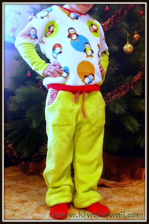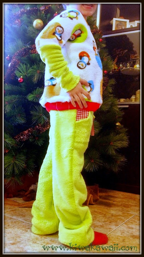 Los he cosido con la misma coralina, en verde, bolsillos de algodón y puño rojo.