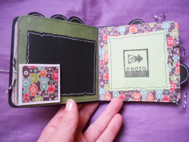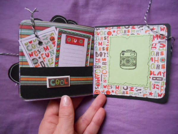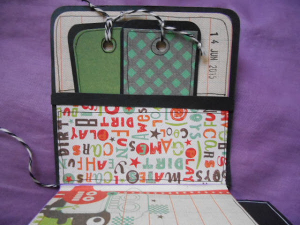 Aquí os dejo las fotos del mini, es como el mini de una sóla hoja, pero hecho en cartulina y adaptado a una medida más grande, luego decorado con papel de scrap, con marquitos del Carcassone, jeje!