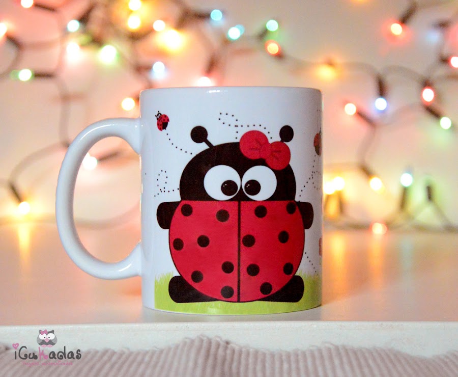Se acercan las Navidades y seguimos con las tazas, ya que son uno de los regalos más solicitados y que sabes que seguro seguro el destinatario lo va a usar y no lo va a tirar a la basura en cuanto te des media vuelta. Y esta vez la taza es de mariquitas.