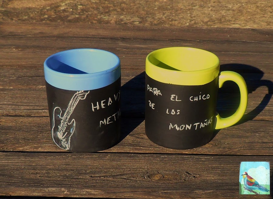 Estas tazas han sido unos regalos de reyes DIY que he hecho este año, ya iré enseñando los demás en otras entradas, es algo que está muy de moda y que es muy versátil, unas tazas pintadas con pintura de pizarra, en las que podemos dibujar o dejar mensajes.