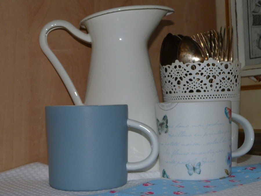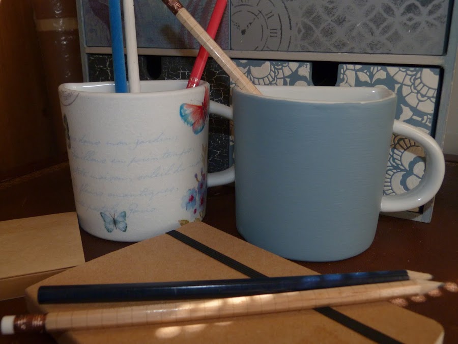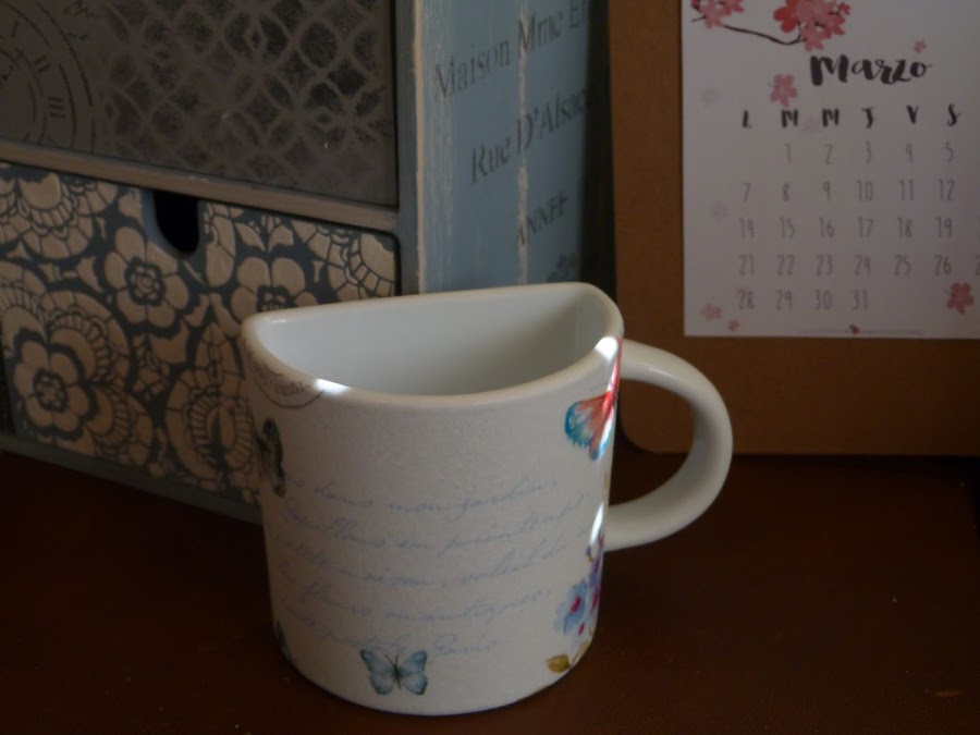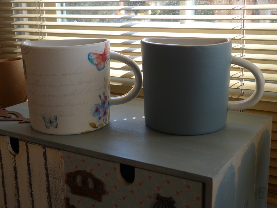 No sabía muy bien qué piezas decorar, hasta que recordé unas tazas algo atípicas que me regalaron en un "Asian Shop" que han abierto hace poco cerca de casa. Con cada compra tienen un detallito, lo cual es de agradecer. En cada una de las dos ocasiones en las que he ido, me han regalado una de estas tazas que he decorado.