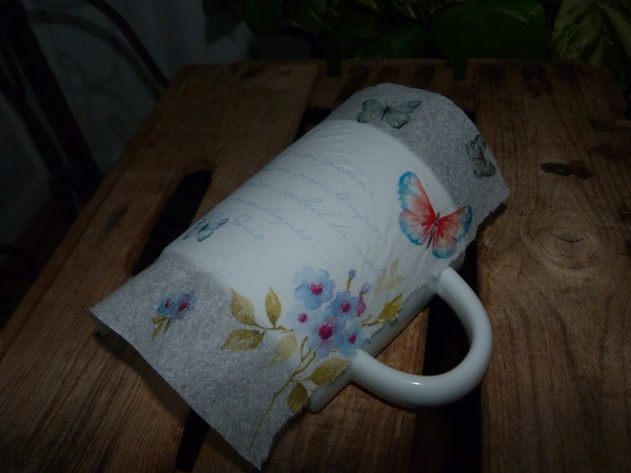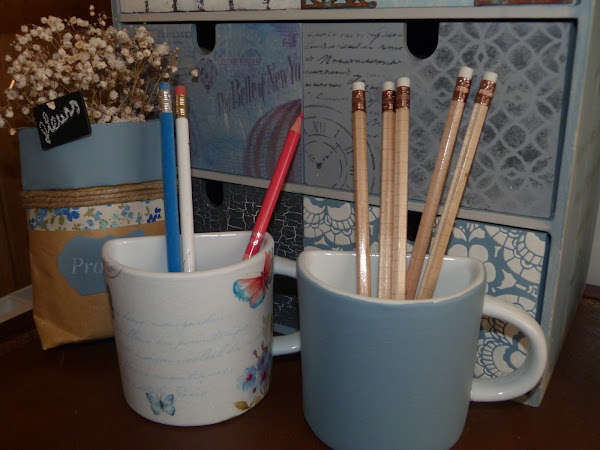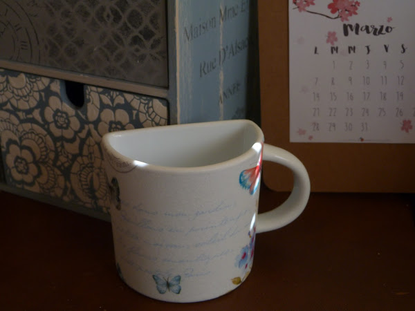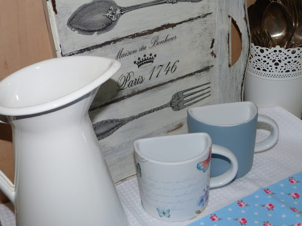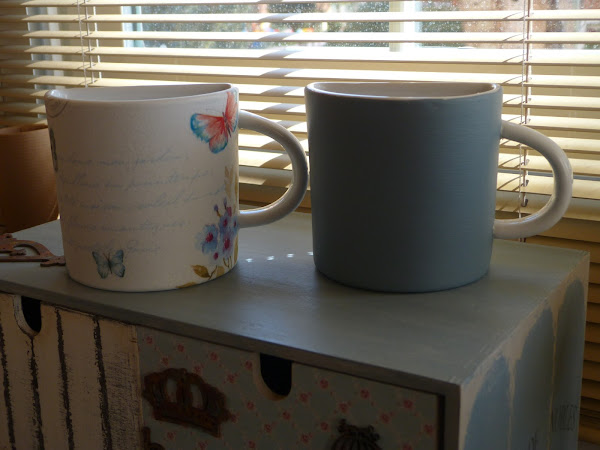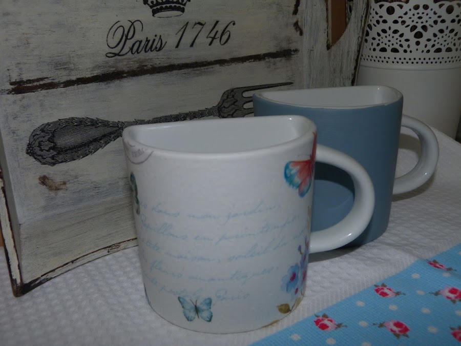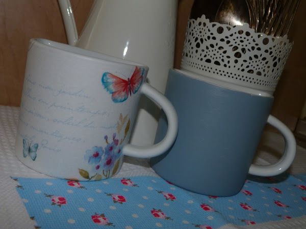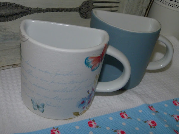 En realidad, se trata de medias tazas... debe ser por si sólo te apetece medio café jajaja...Una de ellas la he decorado con decoupage, utilizando esta servilleta: