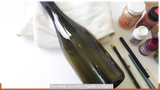 Para decorar la primer botella de vino usaremos restos de pinturas que tengas a mano, podemos usar pinturas acrílicas, vinílicas (las que se utilizamos para pintar paredes) pinturas de cartel, escolares, realmente es muy poca pintura la que necesitamos...