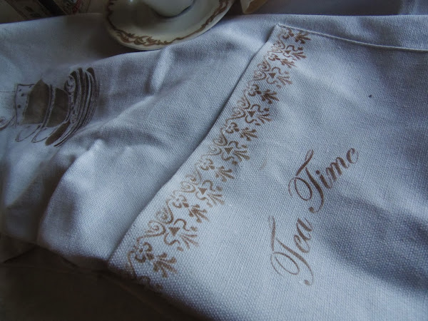 Y esto qué os enseño ahora es un camino de mesa con unas plantis qué parecen sellos,hechas por mí y qué en realidad las hice para un baúl,pero cómo aún no lo tengo acabado y no me resistía a probarlas las puse aquí.