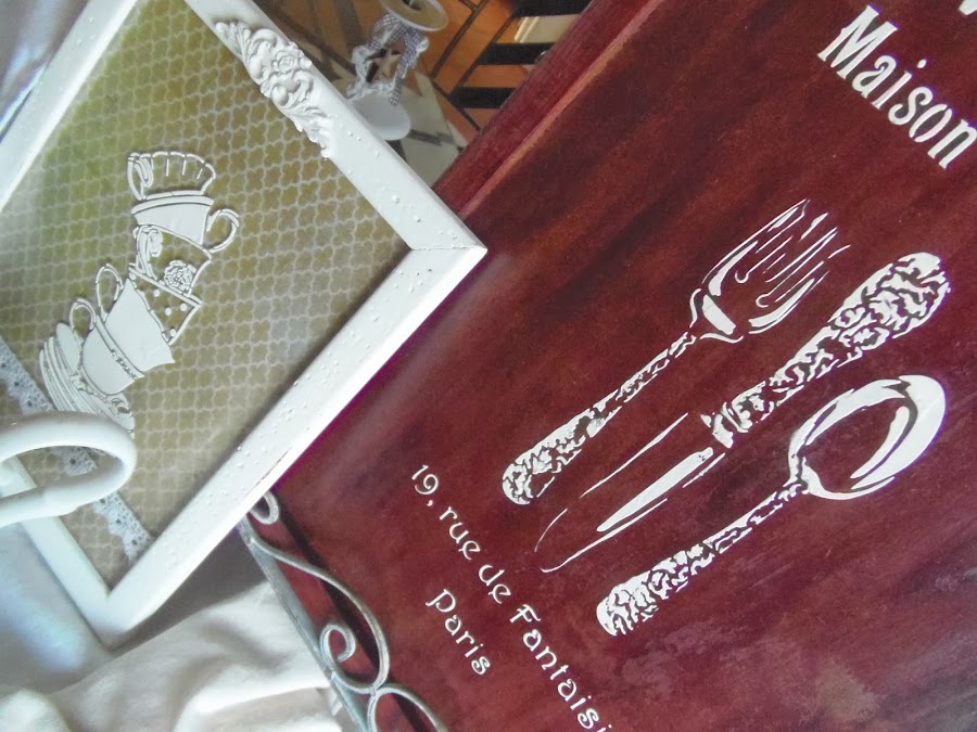 Y un tablero qué estaba ya en este color y un poco perjudicado,con manchas en la madera,pero no me importó,un poco de lija y cera para dejarlo suave pero conservando sus defectos y otra planti en relieve