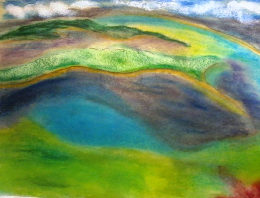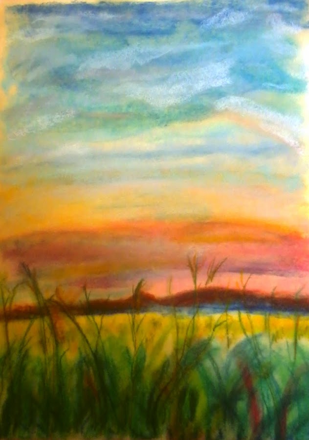 Se trata de interpretar o crear imágenes. Primero se puede dibujar con el pastel, y luego con el pincel mojado en aceite de linaza difuminar el pastel. O al revés, mojar el papel con aceite de linaza y después colorear con el pastel.