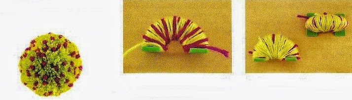 Opción: una buena idea es agregar como color secundario, un tercer tono de lana en el paso 4, y así obtener un pompón tricolor."