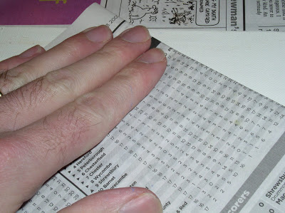 Utilizamos papel de periódico como absorbente. Lo colocamos sobre la pintura y presionamos suavemete.