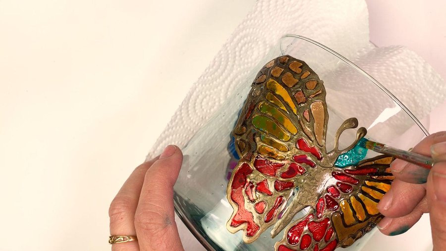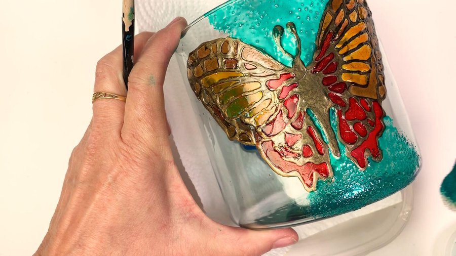 Ya están terminadas y secas ambas mariposas, lo que sigue es completar la parte de vidrio que quedó vacía.