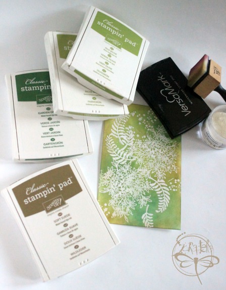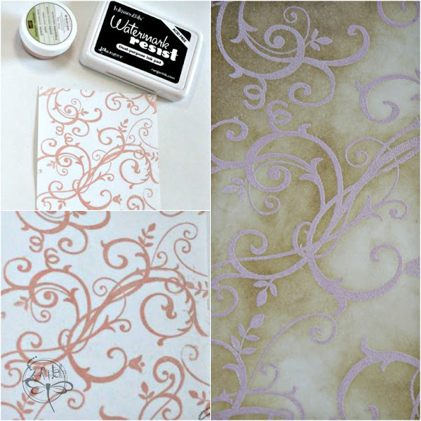 Pero también podemos tomar una almohadilla con una tinta con base oleosa, por ejm: Versamark o Watermark (Ranger)
