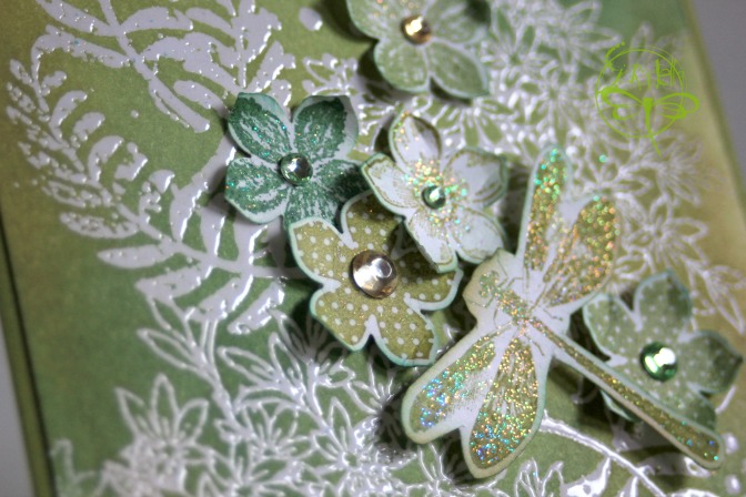 "Heat embossing resist", que sería la técnica de resistencia con polvos de realce o la técnica de la "falsa resistencia", en sí falsa no es, es sólo que el medio que hace que no entre el color al papel, se queda y hace parte de la composición, como son los polvos para realce (embossing) que pueden ser transparentes o con color.