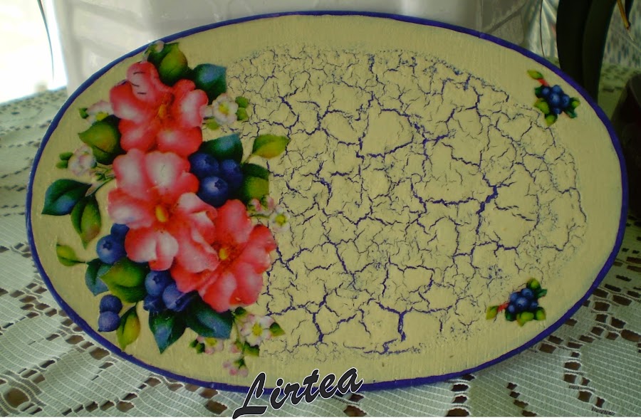 Una pequeña bandeja, con el borde craquelado.(uno de mis primeros trabajos)