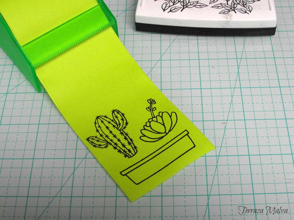 Estampo el cactus de la izquierda. Su parte inferior también solapa un poco la maceta por el mismo motivo que antes.