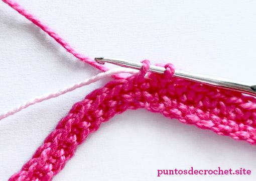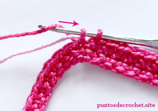 2. Empezamos el punto bajo como es habitual, sacando la hebra. Seguimos con el hilo dentro del punto.
