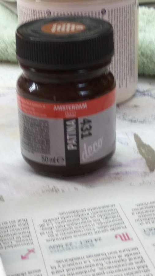 2- Aplicar la pátina marrón en la superficie y seguido retirar el exceso de producto con un trapo de algodón. Se deja secar bien la pieza, mínimo 24 horas.