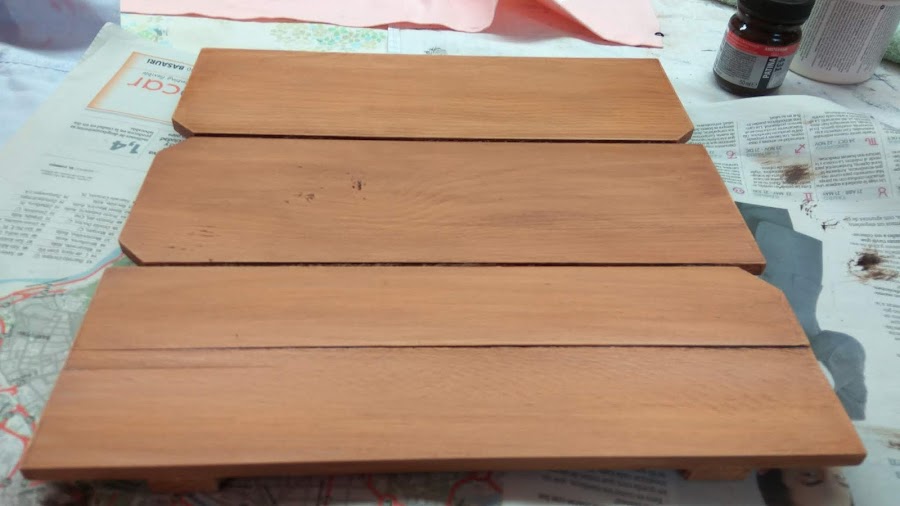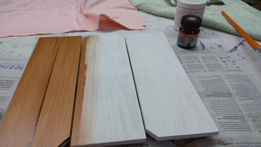 1- Preparar el soporte: En mi caso utilicé una tabla de laminas, lo primero lijar suavemente la base y aplicar un color, en mi caso blanco roto.