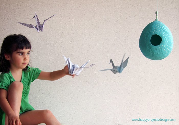 ¿Quieres experimentar con esta técnica?: te propongo un DIY facilísimo para decorar un ambiente infantil, un Nido para tus grullas de Origami al que tal vez consigamos encontrar usos alternativos?.