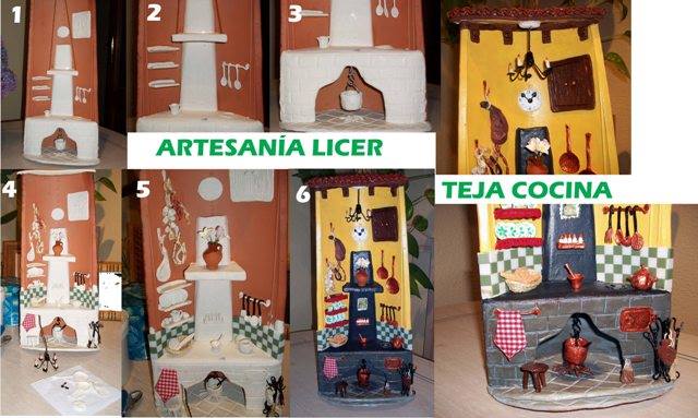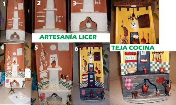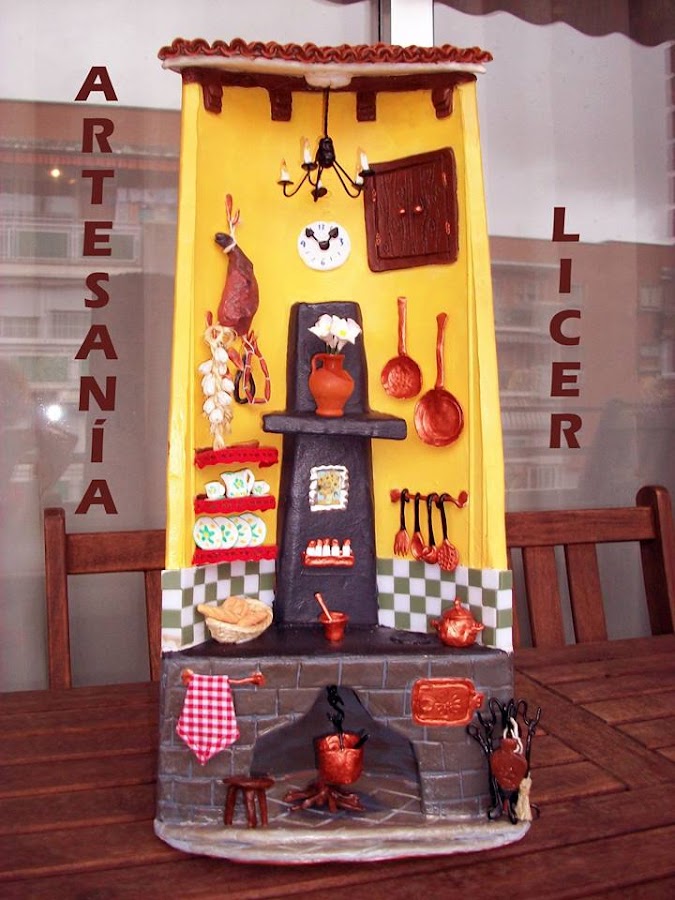 Como veis, debéis modelar las diferentes partes, para algunas podéis utilizar todo tipo de material, por ejemplo, la lampara está hecha de alambre y pasta, Lo importante es hacer todos los detalles y conseguir que sean más reales mediante la pintura, por ejemplo, los utensilios estan pintados con acrílica color cobre que les da el aspecto metálico. Yo utilizo la marca "Americana" porque me parece la mejor.