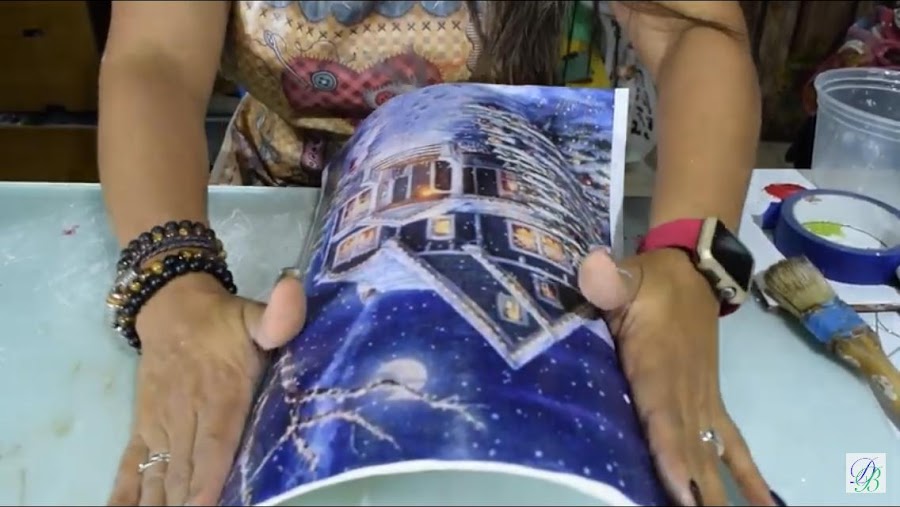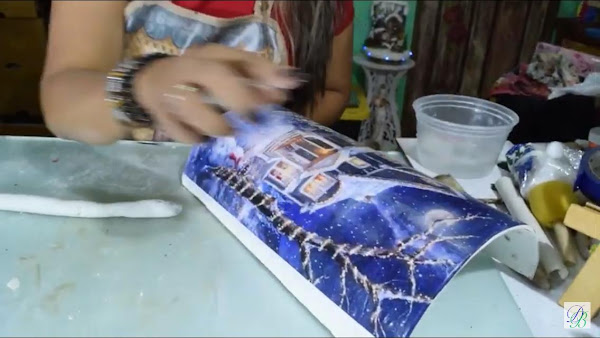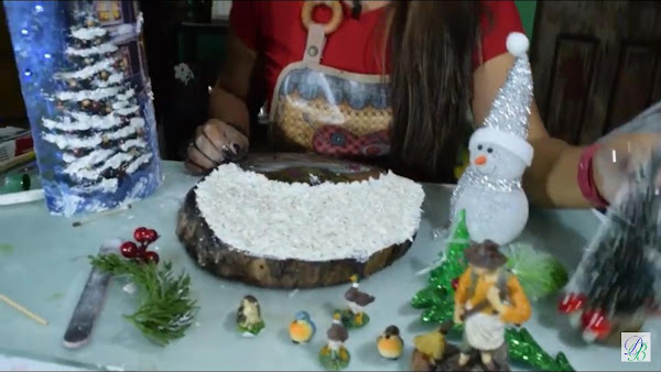 También buscaremos todos los adornos que tengamos para decorar esa área, que nos vaya con la lamina, ramitas de ciprés, muñeco de nieve, pajaritos,