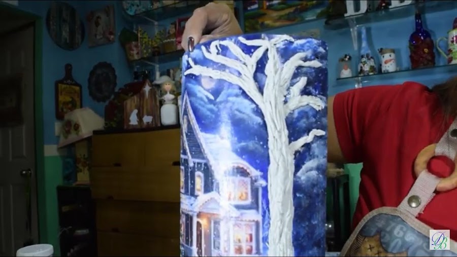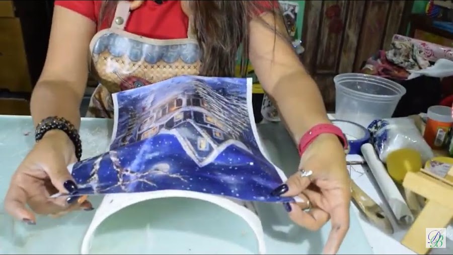 Por otra parte trabajaremos en sobre la teja, con nieve, siguiendo el diseño de la lamina,