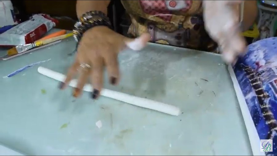 Vamos a estirar nuevamente pasta y haremos un chorizo y aplastaremos, para poner sobre la teja