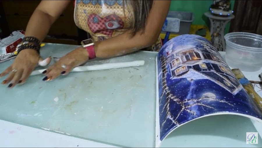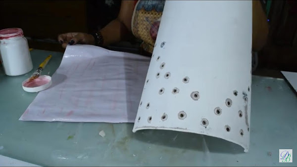 Sobre la lamina que usaremos pondremos goma blanca o cola de carpintero, para pegar sobre la teja.