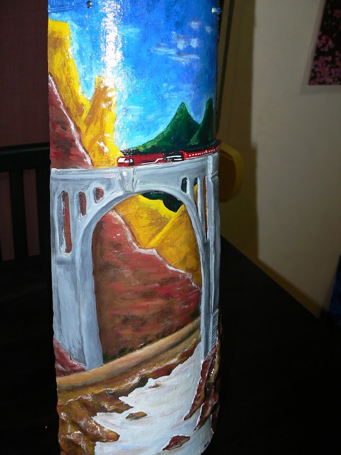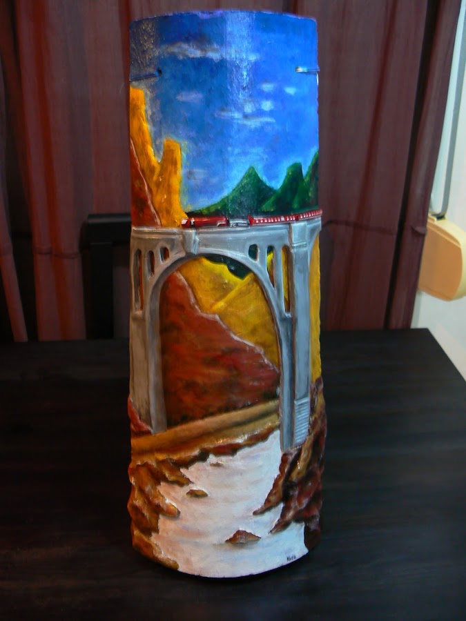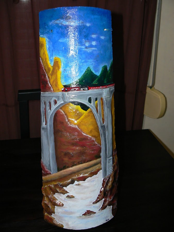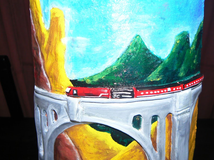 La Cabeza del Tren Bueno y aquí llegan las dos últimas tejas que tenía encargadas...La primera, es sobre la cabeza de un tren de la Renfe, es para un familiar mío que trabaja en ella.Con esta teja vuelvo a los leds, tiene uno imitando la luz del faro del tren y el interruptor... bueno os dejo las fotos a ver si lo veis. Saludos, Nora Barro Pintura Terminada Aquí tenéis el interruptor... ...
