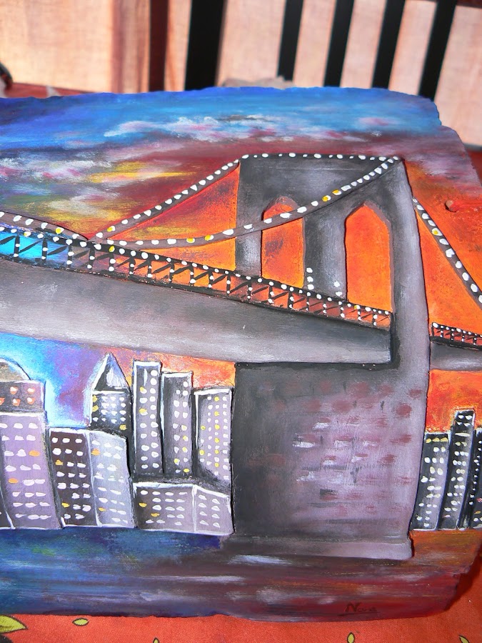Esta vez se trata de una teja de New York (una imagen bastante conocida), es el regalo que le he hecho a mi prima Nerea.