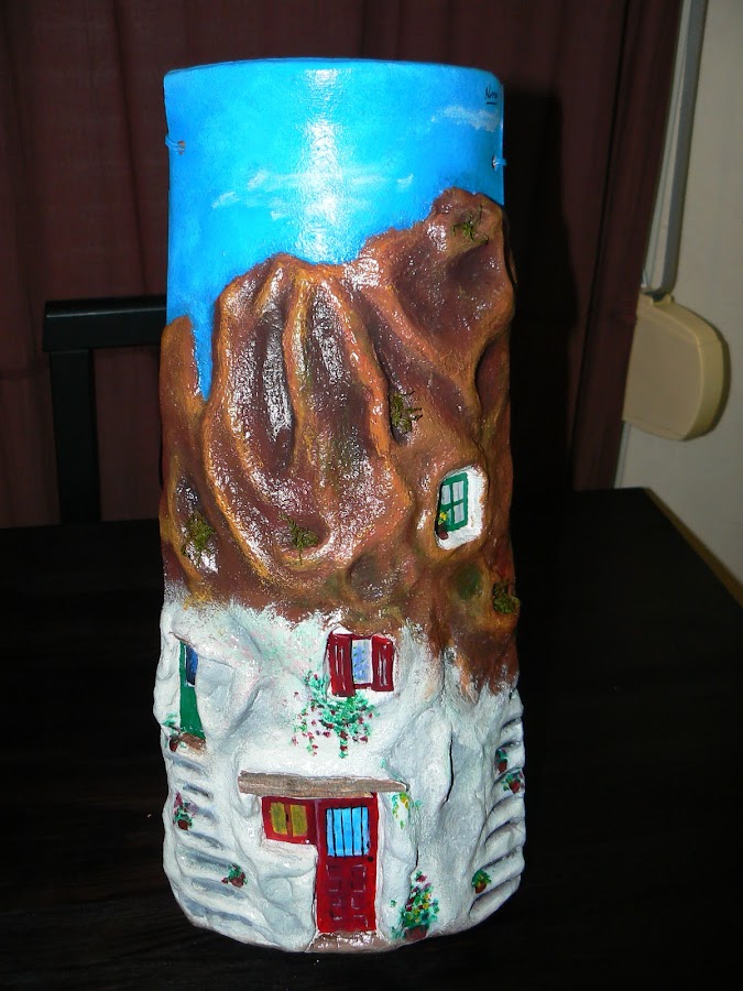 La gente que la ha visto, opina que esta muy lograda, pero supongo que yo como autora no le veo el que... no sé quizás sean cosas mías, porque después de hacer cinco tejas en tan poco tiempo (un par de semanas) y trabajando de por medio, uno como que se satura.