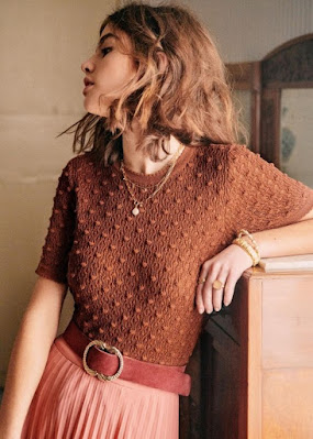 La verdad es que como tejedora me parece muy entretenido encontrar ideas similares y, casi por casualidad, he dado con el patrón "Elna T-shirt" de Novita Knits que bien podría ser una alternativa perfecta para tejer una versión hecha a mano del jersey de punto "Marceau" de la colección de primavera de Sézane del año pasado.