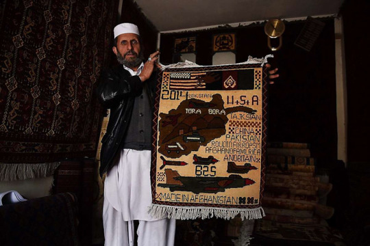 En Afganistán, los tejedores han utilizado diseños de alfombras como una forma de preservar el tejido cultural de la casa. Tejedores del pasado se sintieron atraídos por las imágenes de flores y motivos geométricos tradicionales. Pero con más de una década de la ocupación militar en su haber tejedores de hoy en Afganistán se sienten atraídos por más de imágenes-drones normalizados modernas.