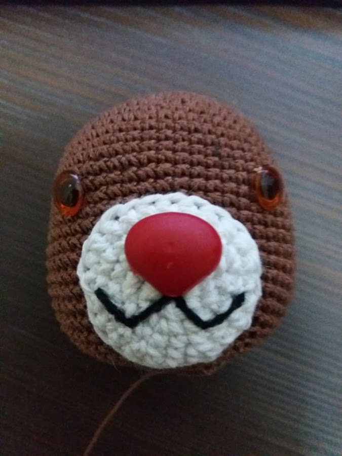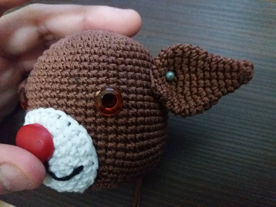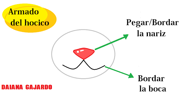 *COSEMOS EL HOCICO EN LA PARTE BAJA DE LA CABEZA (COMO MUESTRA LA FOTO) PUEDEN HACER EL BORDADO DE LA BOCA ANTES DE COSERLO A LA CABEZA, LA NARIZ SE PUEDE BORDAR O SE LE PUEDE PEGAR UNA NARIZ PLASTICA DE COLOR ROJO (SI AL IGUAL QUE YO VAN A PEGARLE UNA NARIZ RECOMIENDO COSER EL HOCICO PRIMERO PARA PODER TENER EL MEDIO LIBRE Y FIJARLO CON ALFILER DE ESTA MANERA ES MAS FÁCIL COSER EL HOCICO A LA CABEZA, EL TAMAÑO DE LA BOCA Y NARIZ QUEDA A GUSTO