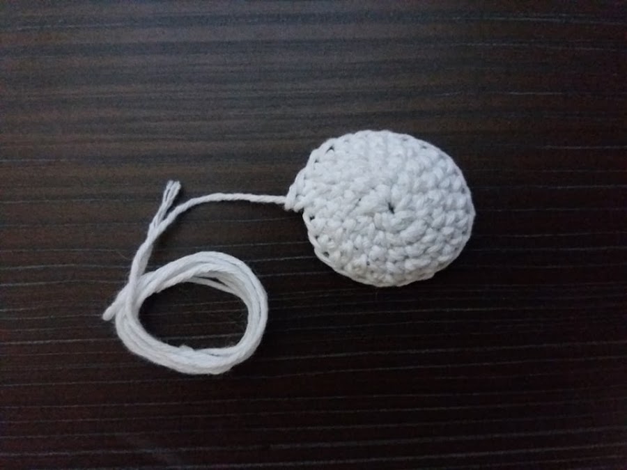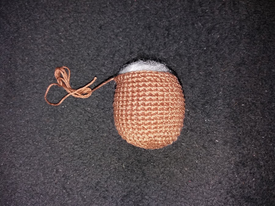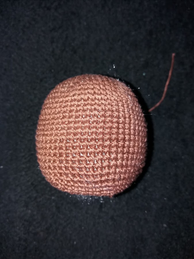 REMATAR DEJANDO HEBRA LARGA PARA COSER A LA CABEZA DESPUÉS, SI ES NECESARIO RELLENAR CON VELLÓN