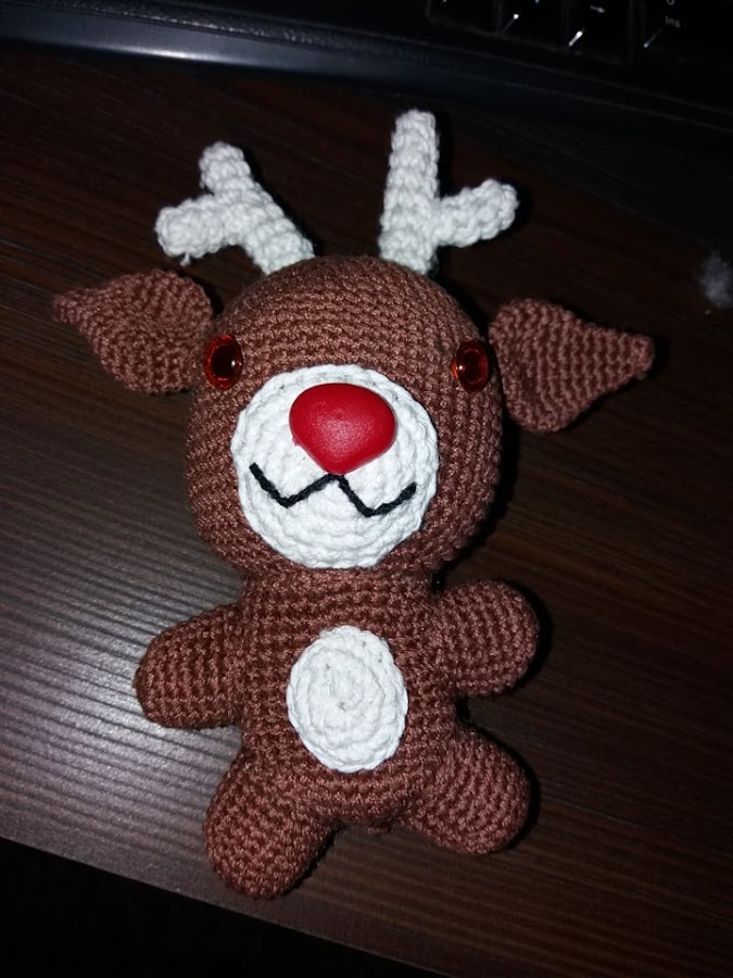 Tal y como lo dice el titulo este mes vamos a tejer al simpatico Rodolfo, mi versión es un muñequito cabezón pero super tierno (me atreveria a decir Kawaii ¨) no lleva mucho tiempo para tejerlo es un modelo sencillo la verdad es que estube algo ajustada con el tiempo pasaron muchas cosas este mes pero no queria pasar la oportunidad de empezar con los retos web, ustedes pueden tejerlo de la manera que más les guste, el color, el tamaño del hilado y de la aguja, la expresion de la cara, en fín pueden personalizarlo a su gusto! dejen volar su creatividad... una vez terminado pueden compartir su trabajo terminado en el muro de mi grupo en Facebook también pueden compartirlo en todas sus redes sociales y colocar el Hashtag: #RDGrodolfoamigurumi para poder compartir nuestro reto con todos los que participen y alentar a otros a sumarse, como dije antes por cuestiones de tiempo meretresa en subir el patrón asi que el palzo de tiempo para terminarlo es desde hoy 17/12/18 hasta el 17/01/19 espero ver pronto sus trabajos! :D cualquier duda con el patrón consultame!