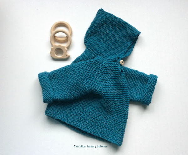 Como os decía, se trata de un jersey básico del que podéis encontrar un montón de versiones en las tiendas, en revistas de patrones de punto, etc. Es básico, sí, pero no por ello es soso y aburrido. Es un modelo muy versátil y resultón. Y muy moderno. Además, es unisex y queda igual de bien a niños y a niñas. Los dos primeros que hice fueron para dos varones, pero esta vez la destinataria es una bebita.