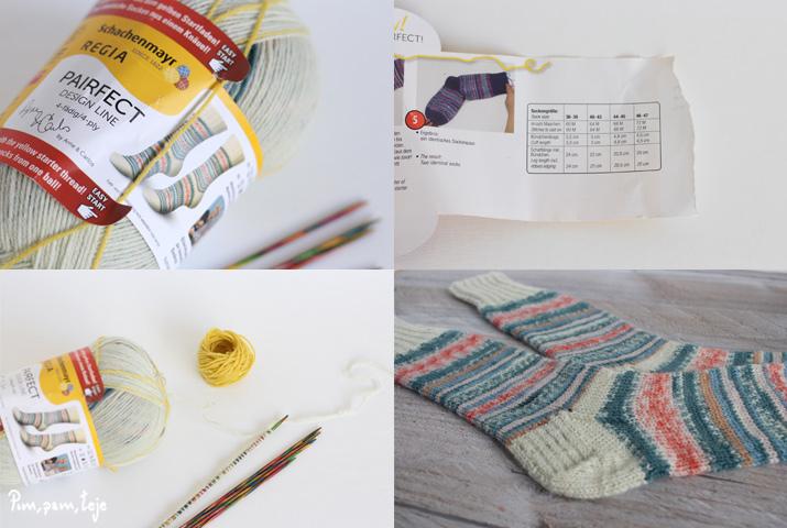 Así que te recomiendo, que tus primeros calcetines los tejas en punto jersey, sin encajes o florituras. Y para darles un toque especial y que no te venza la monotonía puedes utilizar uno de los ovillos de la colección Regia Pairfect, de la marca Schachenmayr.