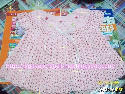 ESTE VESTIDITO ESTA TEJIDO CON UN HILO DE ALGODON SUAVE..TAMBIEN PUEDE HACERSE CON CASHMILON DE VERANO...EN BLANCO IDEAL PARA BAUTISMO ..