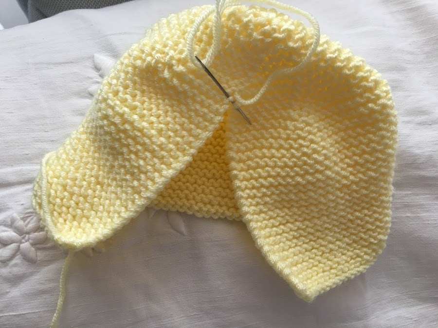 Al terminar el tejido deja un cabo de lana largo para poder coser el gorrito.