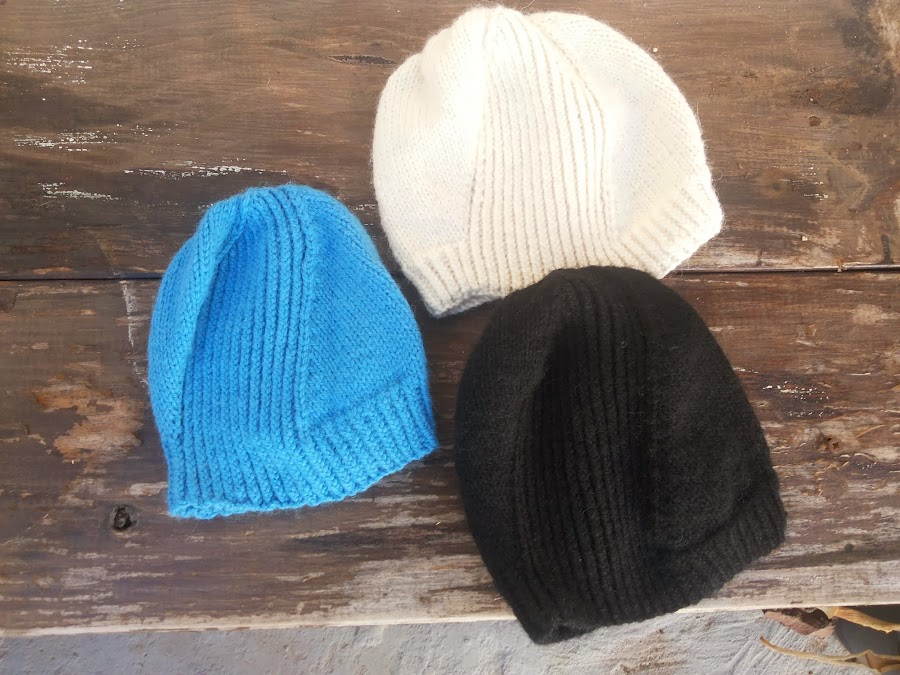 Estos gorros, de tres tallas diferentes, se llevan cada uno poco más de un ovillo y medio de lana Nepal, de Garnstudio, y el patrón Windchief de Stephen West. El patrón no podría ser más fácil y rápido de tejer, pero me costó un poco entenderlo cuando lo tejí la primera vez, puede que por ser uno de los primeros patrones de este diseñador.