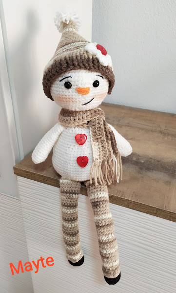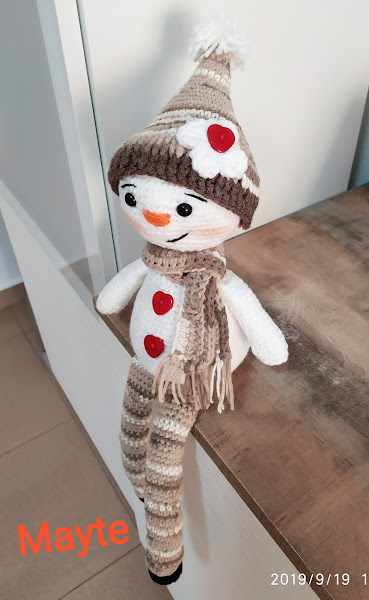 algodón 6 madejas por 3€, y en un reto de Face tejí este muñeco de nieve