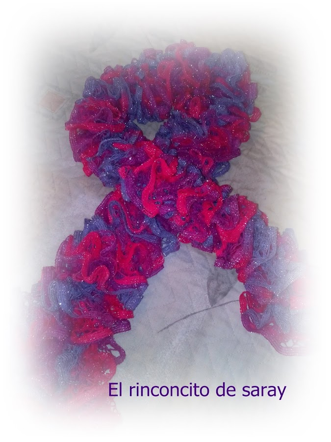yo le hice una bufanda con un hilo muy especial , es como una puntilla se queda una bufanda de lo mas elegante , por mi zona estuvo muy de moda