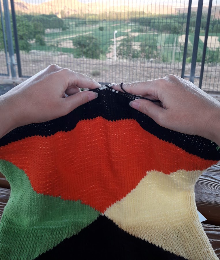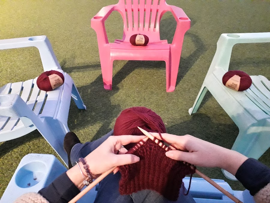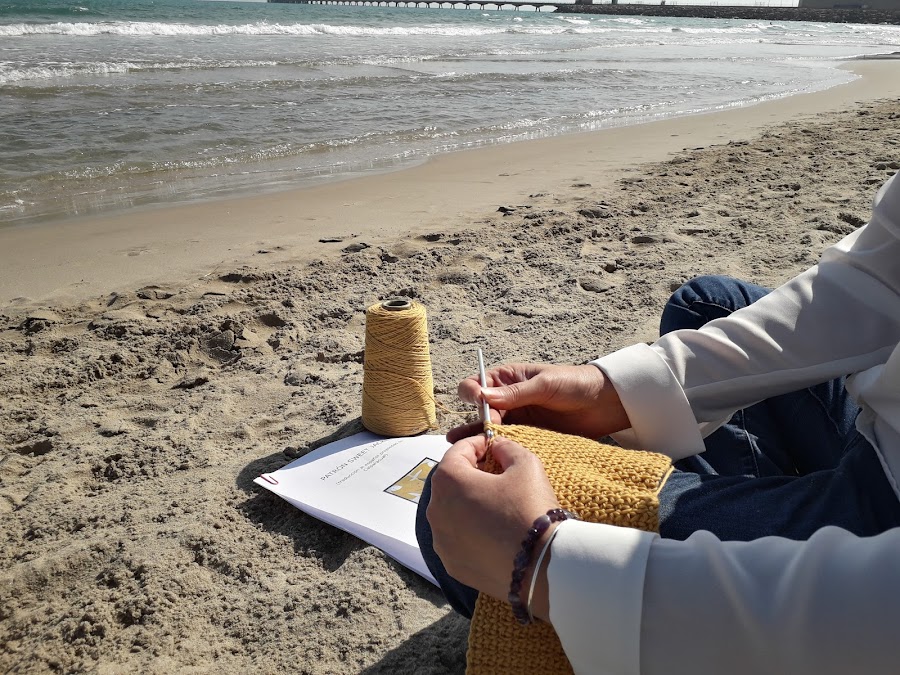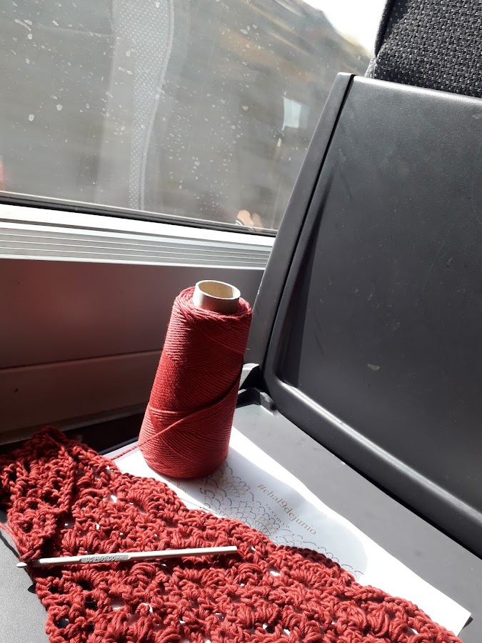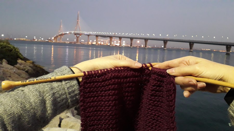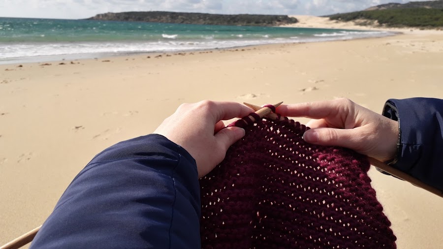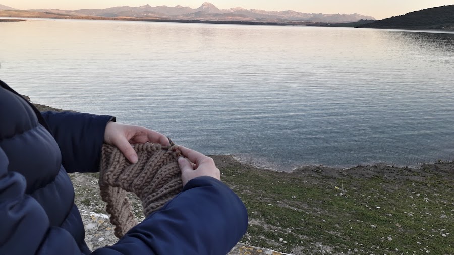 Siempre lo he dicho, y en las fotos que podéis ver en las redes sociales de Mis LolanasyPunto, se ve perfectamente que tejo donde quiero, cuando quiero y como quiero.