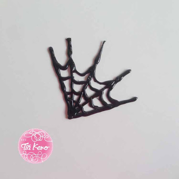 Cuando la silicona se ha secado completamente la retiramos de la transparencia y nos quedará una tela de araña de silicona transparente, ahora ha llegado el momento de darle color. Con un bote de pintura en spray negro la vamos a pintar para que quede más real y así nos queda una tela de araña esquinera perfecta para decorar cualquier ventana.