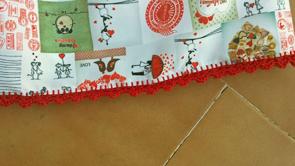 En el capítulo compras os mostré algunas cosillas que habia ido adquiriendo en Galicia y Portugal. Estando allí me entro un ansia enorme de hacer algo y en una excursión en los primeros días a Viana do Castelo me hice con una tela muy graciosa en color blanco con estampado rojo y