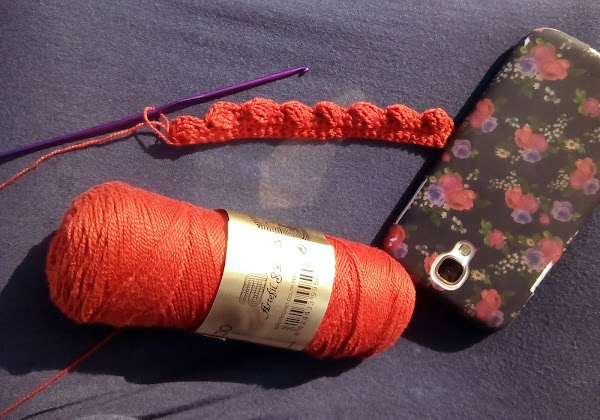 Y finalmente os muestro con qué me calmé la ansiedad en esos días. Esto fue lo que pensé hacer con la primera tela. Fui a buscar lana roja y una aguja de ganchillo adecuada y ... a darle al crochet.