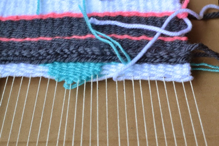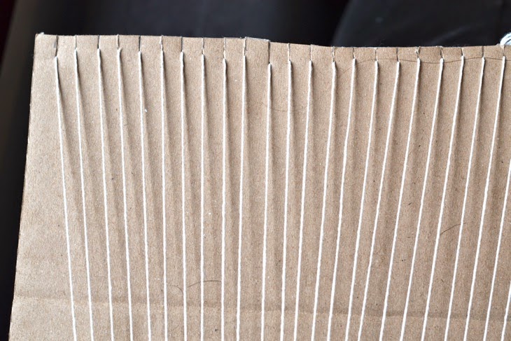 He cogido un cartón y he realizado unas ranuras a 1 cm cada una donde he ido insertando un cordél fino de algodón, como véis en la foto...