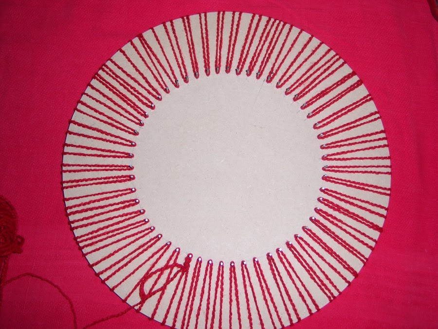 Si bien acá nos encontramos con un telar redondo, éste no comparte con los anteriores más que la forma circular, ya que el modo en que tejeremos en él, difiere notablemente de aquéllos. En el telar para boinas se teje a la manera del telar clásico, esto es, tendiendo en primer lugar la urdimbre y tejiendo la trama a continuación.